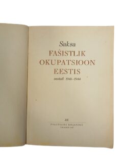Lisamärkused: Raamat on aastast 1947. Saksa fašistlik okupatsioon Eestis aastail 1941-1944.